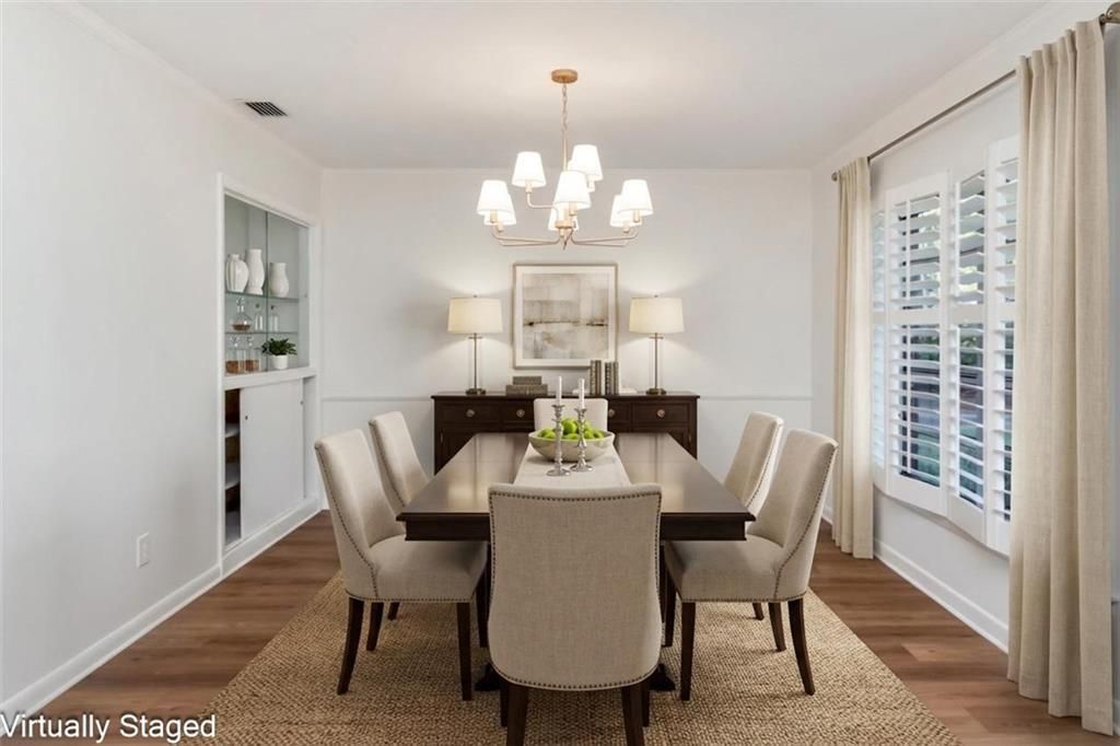 This is the one you've been searching for! A large lot, modern updates, and a traditional floor plan come together beautifully in this updated ranch, situated on a spacious lot just under 1 acre. Inside, you'll find high-end finishes including new LVP flooring throughout, recessed lighting, updated plumbing and light fixtures, and plantation shutters. The spacious living room is filled with natural light and flows seamlessly into the dining area, complete with a built-in china cabinet. The open concept kitchen features new stainless appliances, quartz countertops, and plenty of storage. An adjacent living space works functions as den or breakfast room. Just off the kitchen, the functional laundry room offers extra cabinetry and counter space, along with convenient access to the double carport and exterior storage room. This home includes three bedrooms and two bathrooms, highlighted by a primary suite with two closets and a beautifully updated bath featuring a custom tiled walk-in shower and new vanity. Outside, the backyard is a true retreat with a covered patio, mature landscaping, and a shed for additional storage. Additional updates include a hot water heater (2026) and a roof less than two years old. Walk or ride bikes to several schools which are less than 1 mile away. Don't miss your chance to own this move-in ready home in a sought-after location!