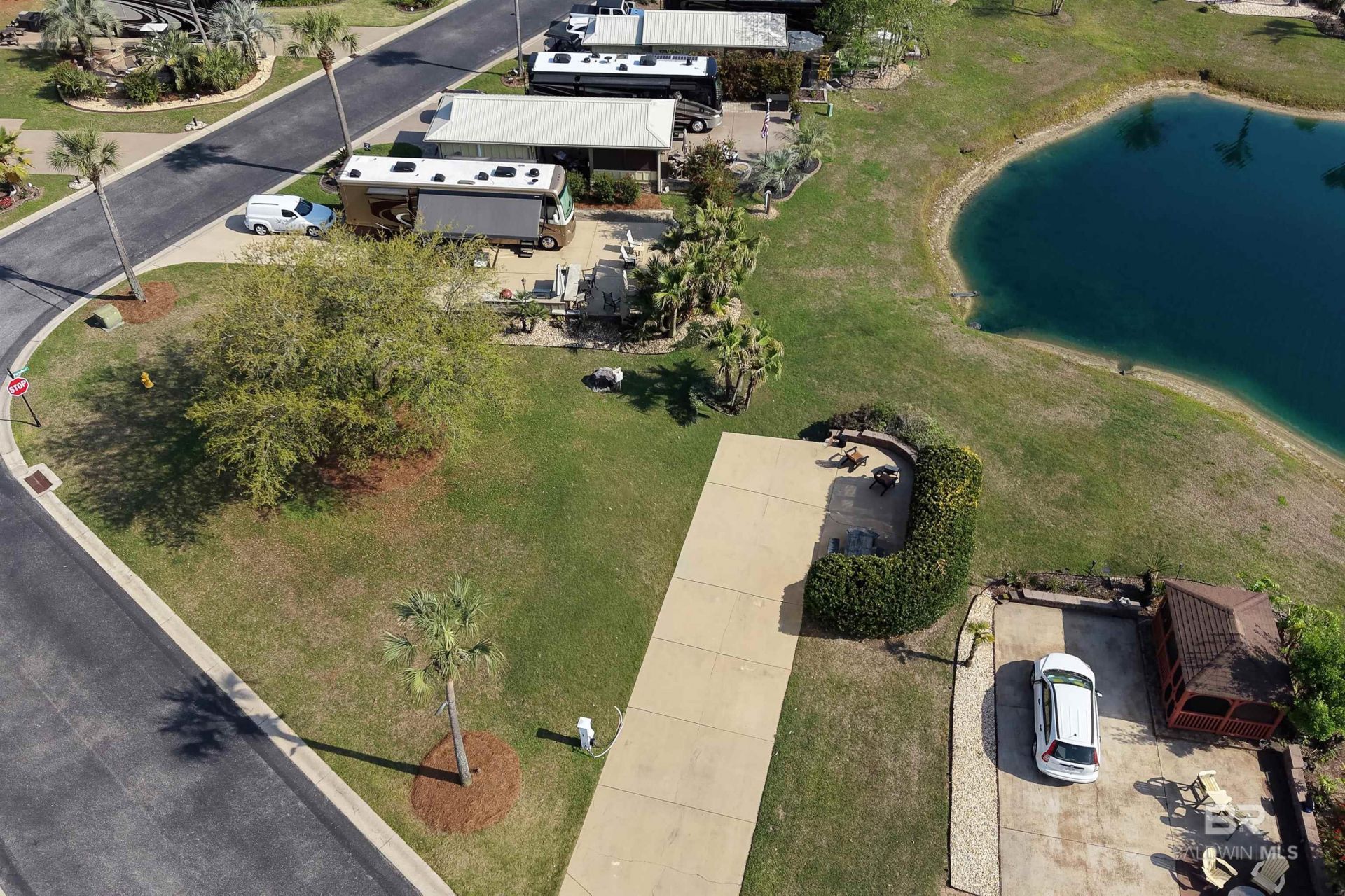 Experience the refined yet relaxed atmosphere of Bella Terra, an upscale luxury RV resort frequently recognized as one of the nation's top 10 motor coach destinations. This lakefront lot enjoys direct views of the community's picturesque 9-acre lake, offering a serene setting for morning coffee, evening sunsets, and everyday enjoyment. The gated, 33-acre resort is located just minutes from OWA, Tanger Outlets, Graham Creek Nature Preserve, The Wharf, and the white-sand beaches of Orange Beach. Designed exclusively for Class A motor coaches measuring at least 32 feet and no more than 15 years old, Bella Terra delivers resort-style living with an impressive lineup of amenities. Residents enjoy a 6,000-square-foot clubhouse, zero-entry infinity-edge pool, hot tub, fitness center, wet and dry saunas, private movie theater, stocked fishing lake, putting green, dog parks, dog wash station, BBQ area, bath houses, laundry facilities, and an active calendar of community events. Owners also have the option to participate in the onsite rental program for additional income potential. Showings are by appointment only, and buyers must be accompanied by a licensed real estate agent. Buyer to verify all information during due diligence.