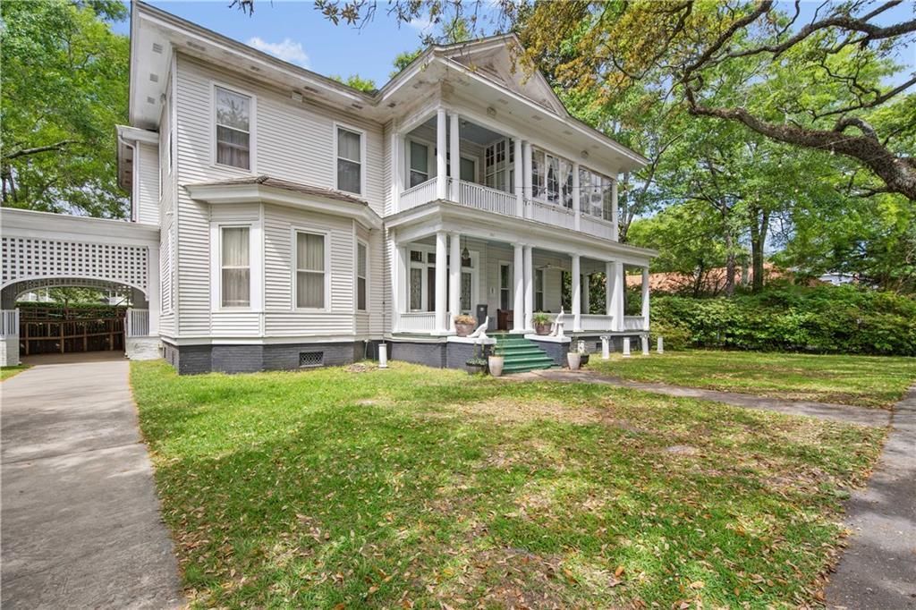 Step into timeless elegance with this stunning historic home, built in 1902 and located in the highly sought-after Lienkauf Historic District. Boasting over 3,000 square feet, this spacious residence blends classic charm with modern comfort. Inside, you'll find beautiful original wood floors, soaring 10-12 ft ceilings, and authentic brass door knobs that preserve the homes historic character. The property is well insulated for year-round efficiency and features Hunter ceiling fans throughout for added comfort. Enjoy relaxing mornings or entertaining evenings on the fully covered back porch and balcony overlooking a generous yard complete with an irrigation meter and an above-ground pool with a brand-new liner perfect for warm southern days. There is also a spacious covered 2 car carport. Conveniently situated just down the street from the new airport, this home offers both accessibility and neighborhood charm. With ample space and endless potential, there's plenty of room to make it your own while staying within budget. This home is being sold as is/where is. Buyer/buyer's agent to verify all information deemed important.