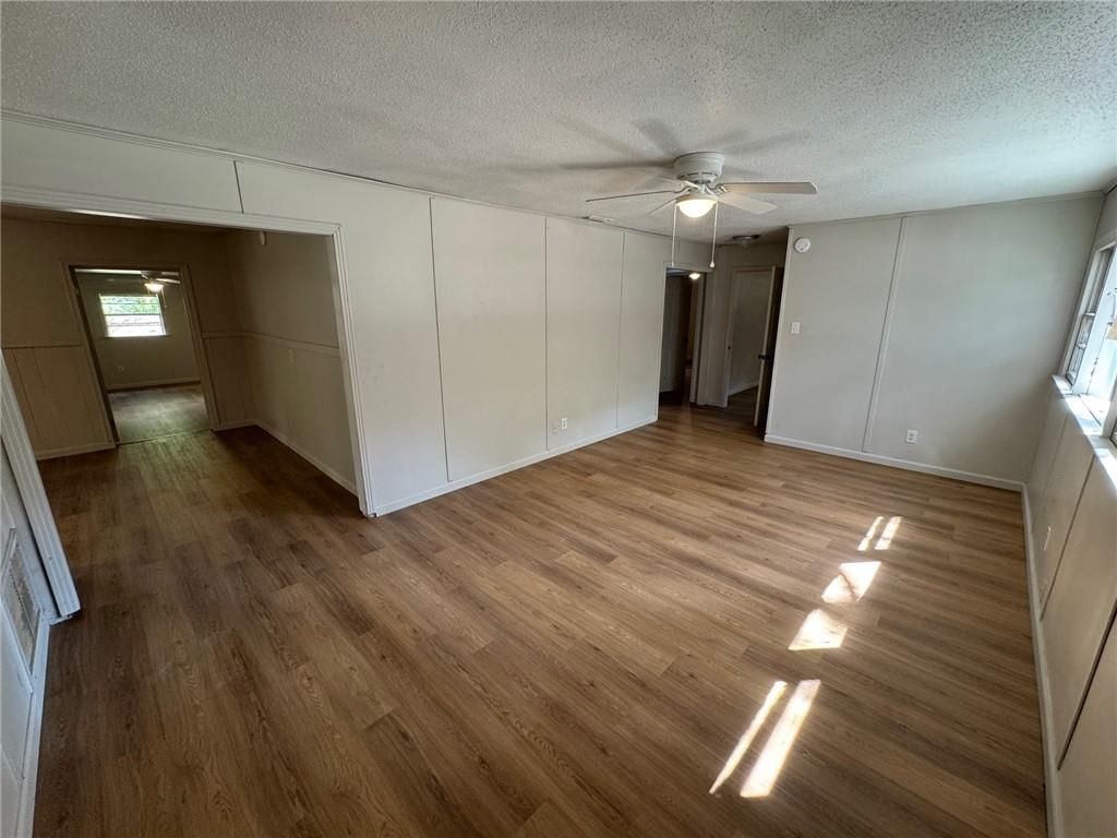 This South Mobile County cottage features four bedrooms and two bathrooms. The residence offers generously sized rooms with vinyl flooring throughout. The open-concept kitchen includes a breakfast nook overlooking the family room, and is equipped with white cabinetry, an electric stove, range, and a three-door French door refrigerator. The split bedroom floor plan provides three spacious bedrooms with walk-in closets and a hall bathroom on one side of the home, while the main bedroom is located on the opposite side for added privacy. The main suite includes a full bath with a stand-up shower and direct access to the laundry room. A 6-foot wooden privacy fence encloses the back and side yards. Also, the private storage/workshop is also accessed from the backyard. The property is conveniently situated off Dauphin Island Parkway, offering easy access to I-10 and I-65. Owner will accept section 8 vouchers