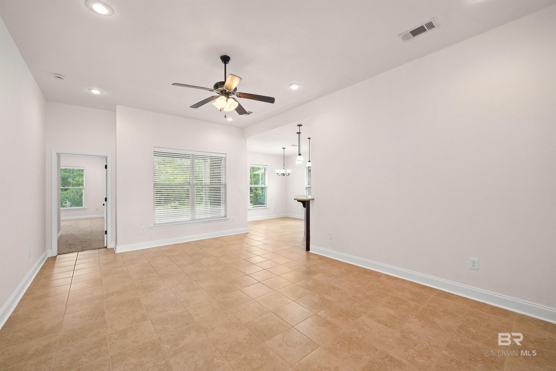 Located in the Waterford neighborhood at 6044 Waterford Dr in Foley, this home offers a great central location between the Foley Beach Express and Hwy 59, making it easy to get just about anywhere. You're a short drive from the white sand beaches of Gulf Shores and Orange Beach, while still being close to everyday conveniences like shopping, dining, entertainment, and schools. Tucked away on a single cul-de-sac street, the neighborhood also has a peaceful pond with a gazebo at the entrance, adding to the quiet, welcoming feel. This 3-bedroom, 2-bathroom brick home features granite countertops throughout and offers 1,518 square feet with a functional, easy-flowing layout. The living room features tile flooring and opens directly into the dining area and kitchen, creating a comfortable space for everyday living and entertaining. The kitchen is equipped with stainless steel appliances and a breakfast bar for additional seating. The primary bedroom includes an ensuite bathroom with a walk-in closet, double vanity, garden tub, and separate shower. Two additional bedrooms share a full bathroom, and the laundry room includes cabinets for extra storage, along with a pantry. Outside, the home offers a covered patio accessible from the dining area, overlooking a wooded view and providing a more private and relaxing outdoor space. Additional features include landscaping in the front yard and an attached double garage for convenience. Buyer to verify all information during due diligence.