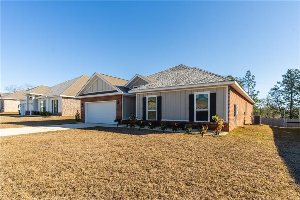 Are you looking for a home in the Saraland school District? Welcome to this impeccably maintained home located in the highly desirable community of The Woodlands of Saraland. This spacious 4-bedroom, 2.5-bath single-story residence features a modern, open-concept design. Upon entering the foyer, you are greeted by a thoughtful layout: one wing hosts three generous guest bedrooms, a full bath, and a convenient laundry room. The heart of the home is the expansive living room, anchored by elegant trey ceilings and flowing effortlessly into a chef-inspired kitchen. This culinary space is fully equipped with a large center island, farmhouse sink, granite countertops, and premium stainless steel appliances, including a gas range and a walk-in pantry.Tucked away on the opposite side of the home for ultimate serenity, the primary suite serves as a private retreat. It features a spacious bedroom and a luxurious ensuite bath complete with a separate tiled shower, a soaking garden tub, dual granite vanities, and a substantial walk-in closet. Beyond the aesthetics, this home is engineered for efficiency and security. Featuring a Gold Fortified Roof and a comprehensive Smart Home Package. Control your Kwikset front door lock, Skybell video doorbell, and Honeywell Z-Wave thermostat all from your smartphone or via the included Amazon Echo Dot. With the remainder of its 10-year structural warranty potentially available and the modern convenience of a front-entry garage, this home offers the perfect blend of high-tech living and timeless style in a premier Saraland location with fenced backyard. Buyer and buyer's agent to verify all measurements and listing information.